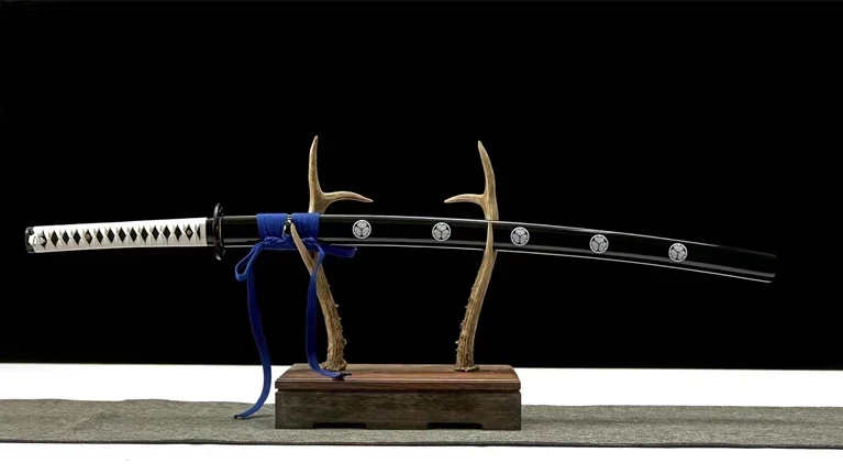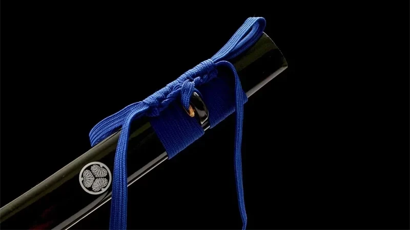 - Saya (鞘): black lacquered wood with white lotus flower symbol.