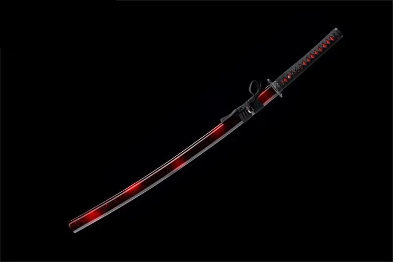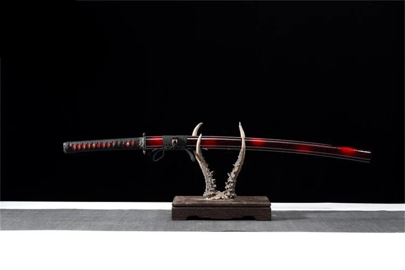 With a total length of 40.16in, this black and red katana offers the perfect balance for cutting. Every element, from the shades of red and black to the engraved motifs, converges to create a masterpiece that is as decorative as it is functional.