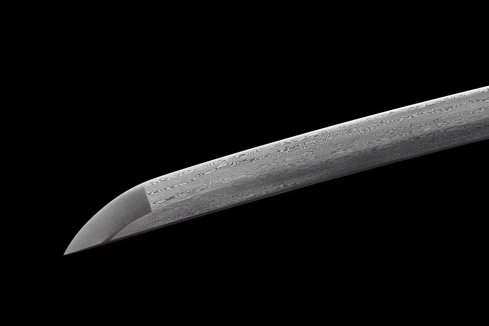 - Tsuka-ITO (柄糸): black diamond pattern weave above the handle.