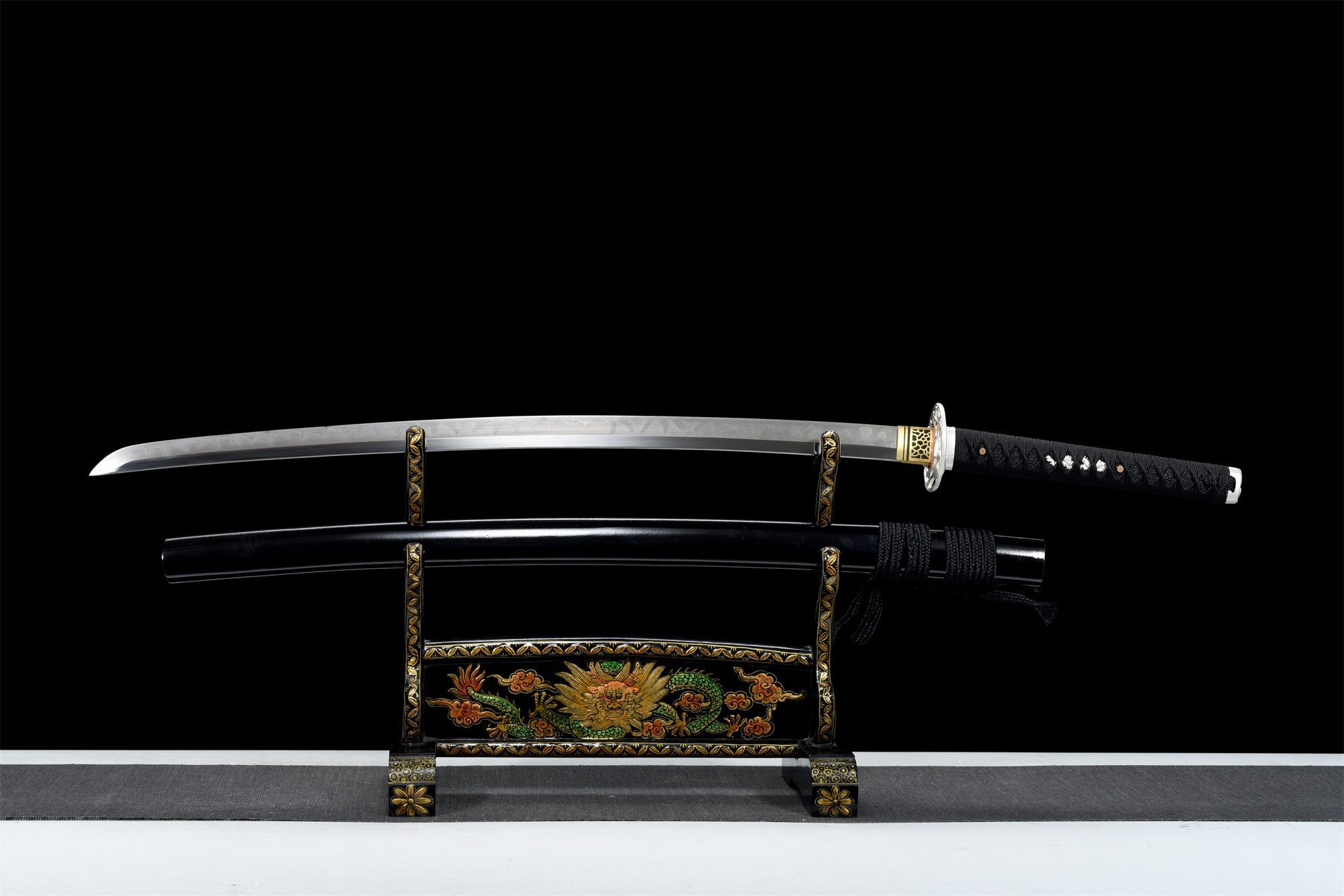 - Scabbard (Saya 鞘) : Black lacquered solid wood scabbard with bamboo painting.
